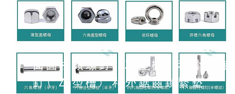 “1.0為螺紋牙距; “16”為螺釘公稱長度值;“T”表示其頭型為扁圓頭;“M”表示其牙型 /尾型 為機絲牙類;“=1”為組合代 碼;“±”表示其槽型為“±槽”也可用“加減槽”表示;“Φ12.5 串塑料墊圈”為特殊標 外六角螺栓p內六角螺栓p馬車螺栓、膨脹螺栓、對鎖螺栓、U型螺栓、自攻螺釘p機械螺釘p緊定螺釘p螺柱、牙條p六角螺帽p尼龍螺帽p金屬鎖緊螺帽p四方螺帽p薄螺帽p蓋型螺帽p蝶型螺帽p法蘭龔螺帽p鉚螺帽p圓螺帽p吊環螺帽p花式螺帽p平墊p彈墊