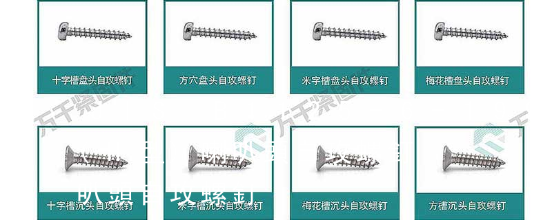 外扳擰:六角,六角法蘭面,六角凸緣,六角花形等;內扳擰:一字槽,十字槽H型,十字槽Z型,十字槽F型,四方槽,復合槽,內花鍵,內六角花形,內三角,內六角,內12角,離合器槽,六葉槽,高扭矩十字槽等。螺紋類型