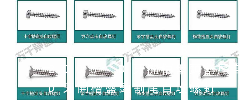 (鐵板牙自攻螺絲) B-2: Plastic Tapping Screw. (塑膠用,自攻螺絲) C: Wooden Screw : 木工螺絲 D: Drywall Screw :水泥墻螺絲 E: Self Drilling Screws鉆尾螺絲(不銹鋼鉆尾螺絲,復合材料鉆尾螺絲) F:膨脹螺絲,四片膨脹螺絲又