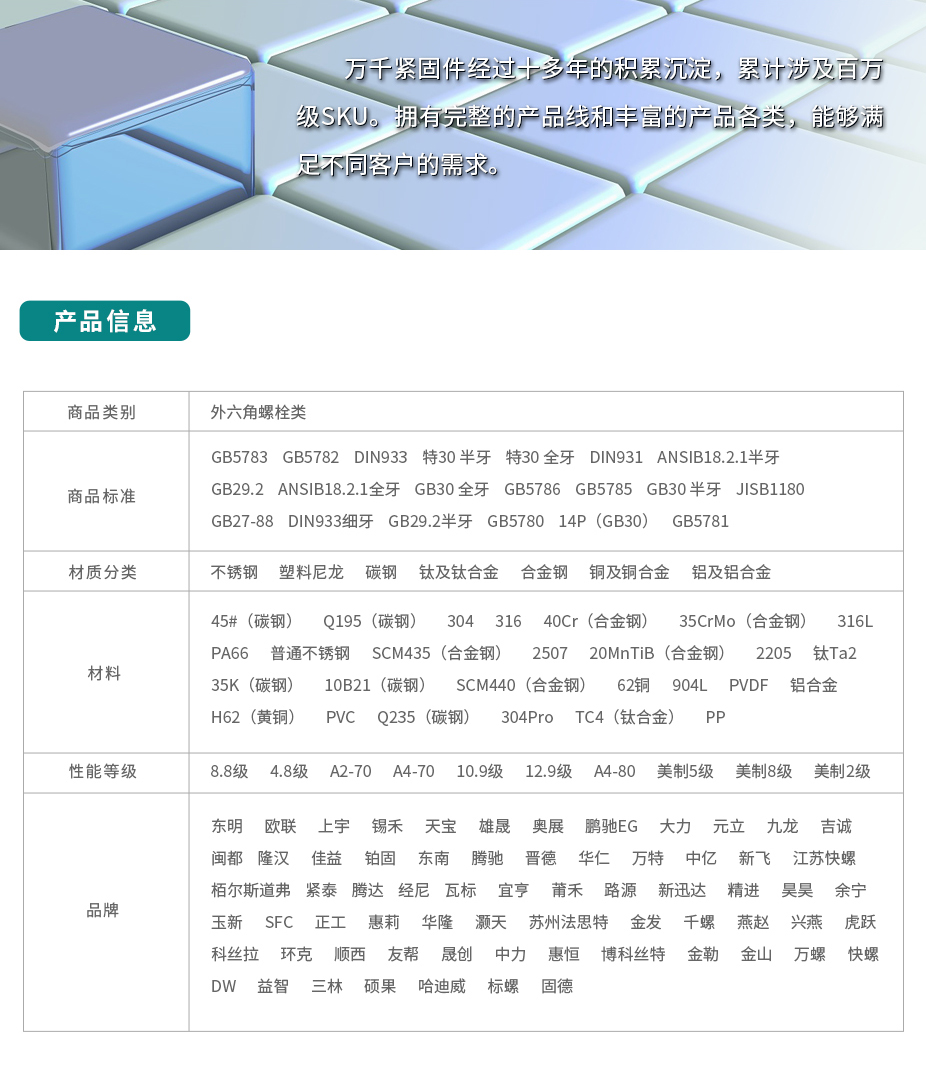 六角螺栓:由頭部和螺桿(帶有外螺紋的圓柱體)兩部分組成的一類緊固件,需與螺母配合,用于緊固連接兩個(gè)帶有通孔的零件。